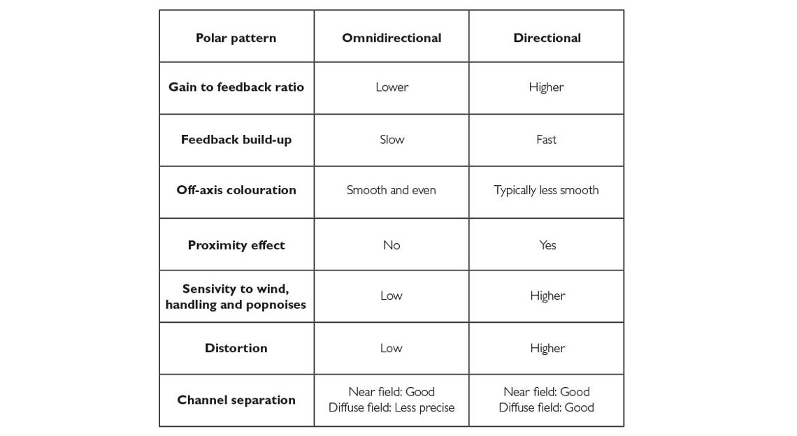 This article list all the performance-related differences that exist when comparing omnidirectional and directional microphones.